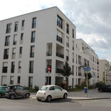 - BV Hafeninsel Offenbach am Main ; Bauzeit Rohbau 2013/14; Baubegleitende Vermessung, Meterrisse, Absteckung Fassade